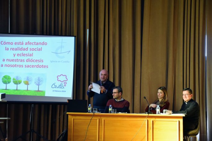 Tras la Lectio Divina preparada por Mons. César Franco (Obispo de Segovia), y con la mirada puesta en el primer paso del itinerario, “Reconocer”, la tarde del lunes se centraba en la mesa redonda sobre “El contexto social de Castilla (cultura, dinamismos sociales e identidad) y su influjo en la tarea pastoral de la Iglesia”. En ella, Dña. Ester Martín (Directora de la Oficina de Transparencia de la Conferencia Episcopal Española) aportaba el retrato en cifras de una Castilla envejecida tanto en población como entre los propios sacerdotes. Una tierra que cuenta con 15 obispos, 1505 sacerdotes, más de 5000 catequistas y 3600 religiosos (con casi 1600 monjas de clausura), pero con tan sólo 39 seminaristas (según datos de finales de 2022). Los sacerdotes, con una media de edad de 69 años, se concentran principalmente en la franja de edad de 75 a 90 años, y han de hacer frente a 3761 parroquias de las cuales 3157 son rurales. El 84% de dichas parroquias está en localidades de menos de 2000 habitantes. Y esto hace que se multiplique la dedicación de los sacerdotes, que destinan más de 2 millones y medio de horas a la administración de Sacramentos, visitas a enfermos, acompañamiento espiritual, despacho parroquial …
